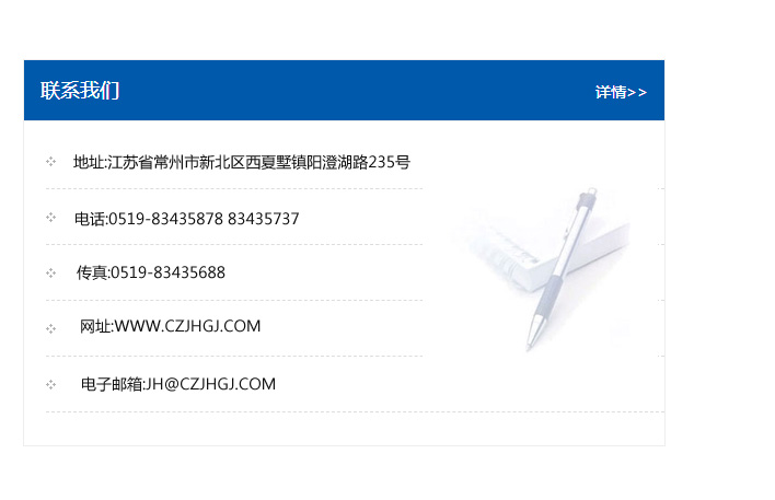 傳真:0519-83435688    郵編:213135    網址:WWW.czjhgj_com.nhh58.com    電子郵箱:JH@czjhgj_com.nhh58.com